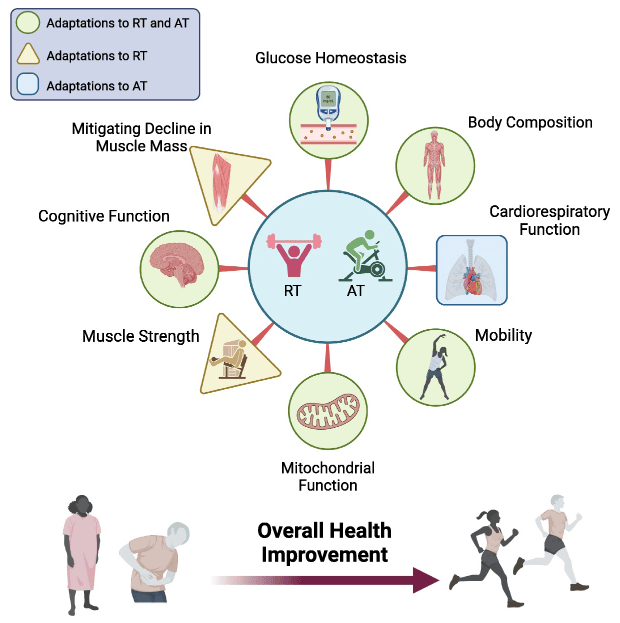 What this all points to is the general benefits of aerobic and resistance training are actually more similar than different: The “forgotten” part of the physical activity guidelinesThe traditional focus on the health benefits of aerobic training has infiltrated our physical activity guidelines and messaging. You know, the ones that say each week we should do: